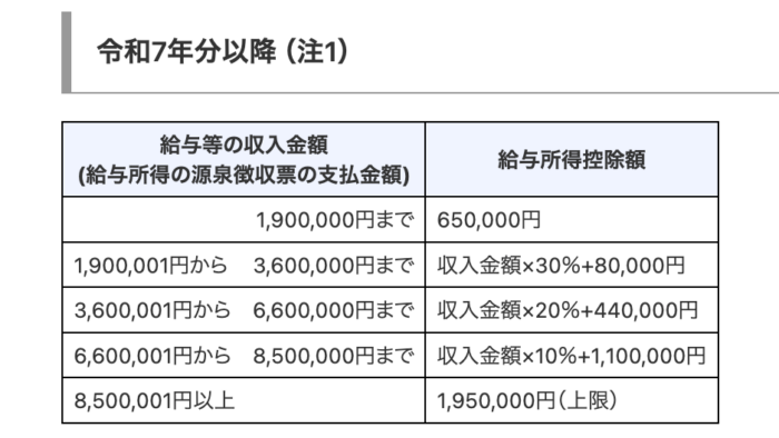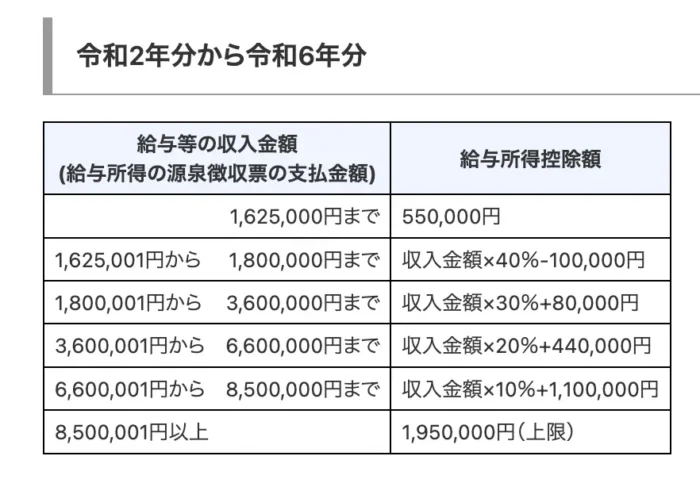 給与所得控除はこれ。