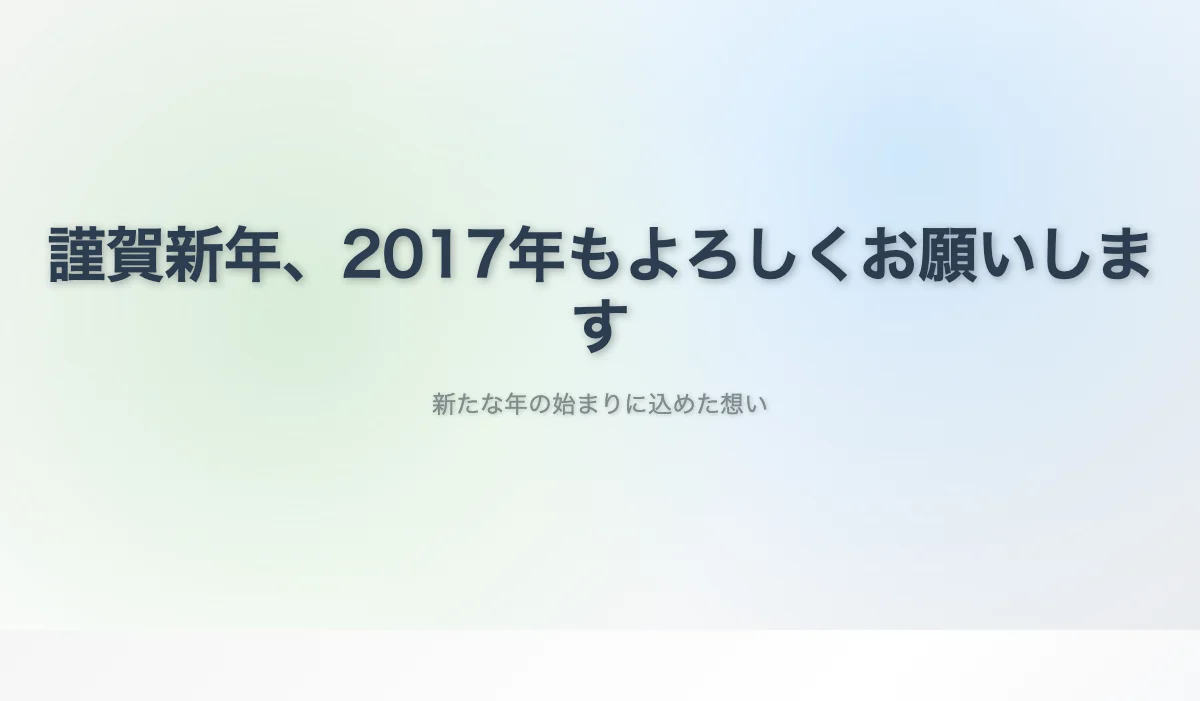 2016年が終わり、2017年が始まりました。根拠もなく2017年は来ないと思っていました。でも来ました。私もとうとう30歳。Don't trust under thirty。今年もよろしくお願いします。