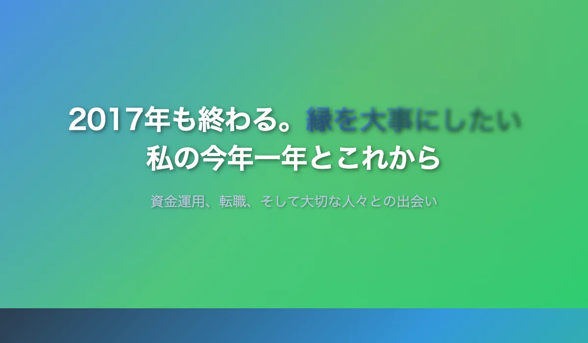 けれど、2017年は盛り沢山の年だった。食わず嫌いだったお金のことを勉強して、投資を始めた。仕事を辞めた。旧友に会った。転職した。東京に引っ越した。多分、転機の年として後年思い出すことになるだろうと思う。