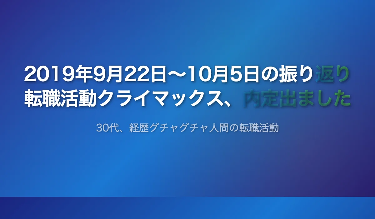 2019年9月22日〜10月5日の振り返り…転職活動クライマックス、内定出ました