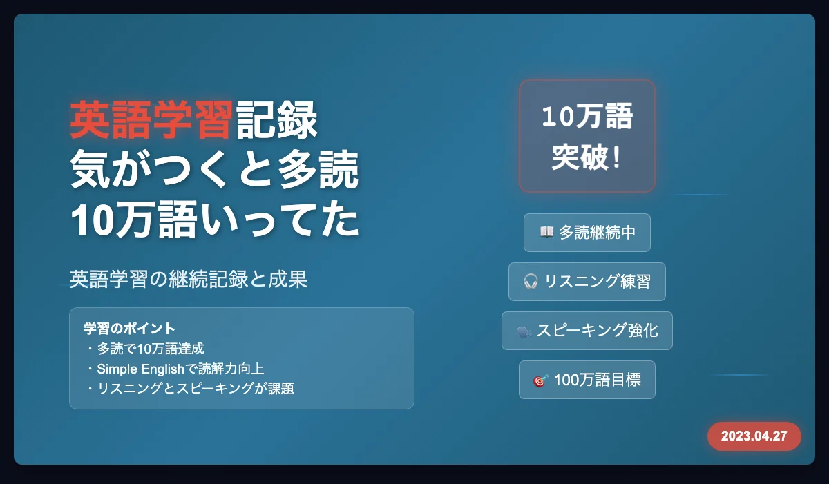 なんだかんだで10万語以上読んでいた。ChatGPTにはSimple Englishで頼むと毎回言っているので、難しいやつはまだスラスラとは読めないけれど、Simple Englishならジャンル次第ではけっこう早く読めるようになったと思う。