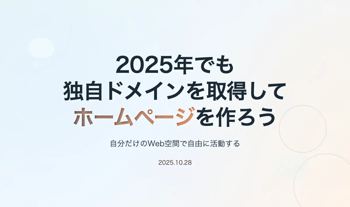 独自ドメインを持っておくとインターネット上における活動の自由が大幅に上がる。もはやプラットフォームのサービスに乗っかるのが当たり前という感じかもしれないのだが、独自ドメインさえあれば、その流れに抗って、自分を中心にして活動することができる。