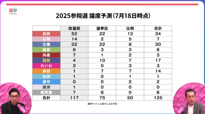 時勢柄、正直もっと伸びるかなと思ったが、伸びていない。恐らく本来いくべき票が相当数参政党に吸われているのだろう。