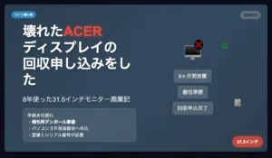 あの時は本当にショックだった。未練がましく、もう使えないディスプレイを部屋の片隅にずっと置いていた。とても邪魔だった。心の整理がついて、捨てられるまでに三ヶ月を要した。私は小さい男である。