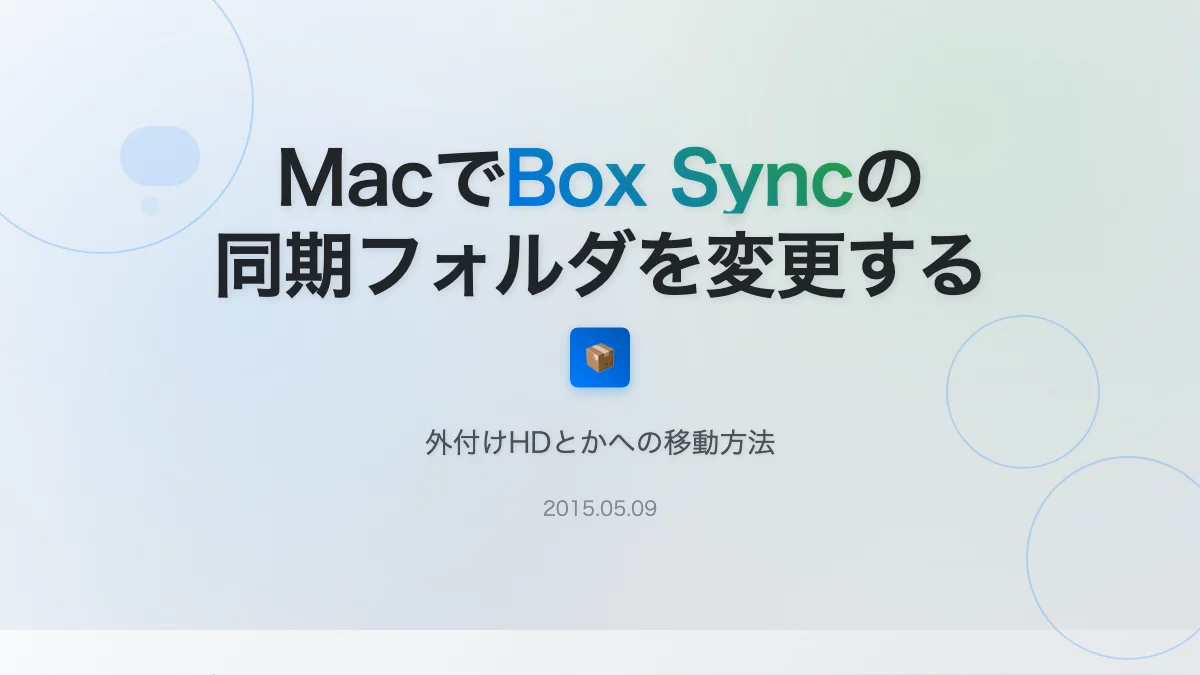 Boxの同期フォルダを内蔵のSSDじゃなくて外付けのHDにしようと思ったのですが、Boxの同期フォルダ変更方法が思ったよりだいぶ面倒だったのでメモです。Boxはバージョン4です。表題のとおりMacでOSはOSX 10.10。