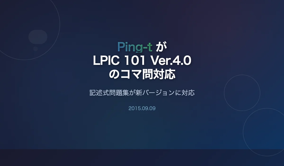 LPICの勉強をしようと思って、「CCNA/CCNP/LPIC/オラクルマスター/ITパスポート/ITIL総合学習サイト Ping-t - 無料CCNA、LPIC、Oracle Master、ITパスポート問題集、ITILファンデーション、合格体験記、Cisco実機シミュレータ、実機講習」を見つけたのは先月のことでした。なかなか良いサイトで、101だけならばお試しということで無料で問題集が解けるので、使わせてもらっています。問題集は暗記に最も適したやり方ではないでしょうか。なかなかちゃんと覚える機会のなかったdpkgやrpmの基本的な使い方や、partedによるGPTでの2TB超えハードディスクの使用、なにもかもEmacsでやっていたところをviも使用する、など、いくつかの事項については仕事でも実際に使う機会がありました。久々に触ったUbuntuも、いつのまにかsystemdになっているようですし、Linuxは追いかけるだけでもまったく苦労します。
