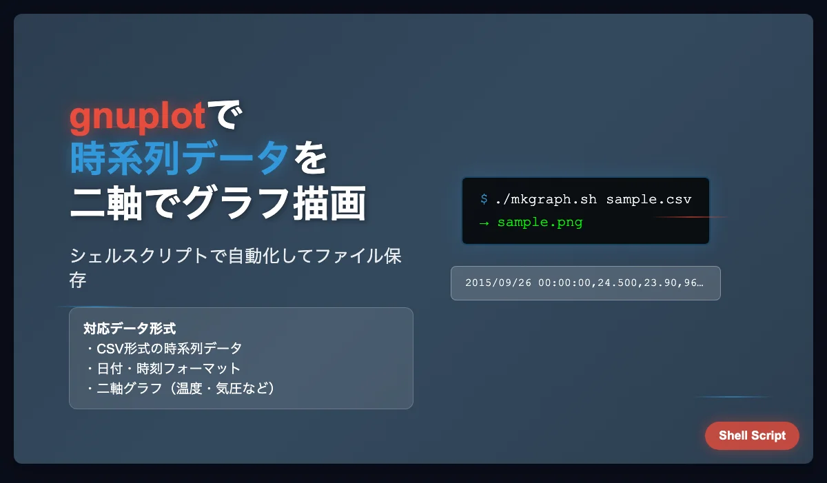 前置きが長くなりましたが、本記事では時系列のcsvデータを読み込んでグラフを描く、保存するためのシェルスクリプトをメモします。