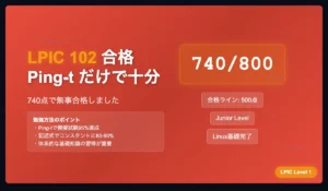 さっき調べてみると、LPICレベル1は初級シスアドと同じくらいだと評されているのですね。となると、世間一般的にはかなり簡単な試験ということになるのでしょうか。個人的には、問題はけっこう際どいところを聞いてくるし、オプションをひたすら覚える苦行もあるのでしんどい試験だと思ったのですが…。まぁ、LPI曰く、ジュニアレベルですからねぇ…。
