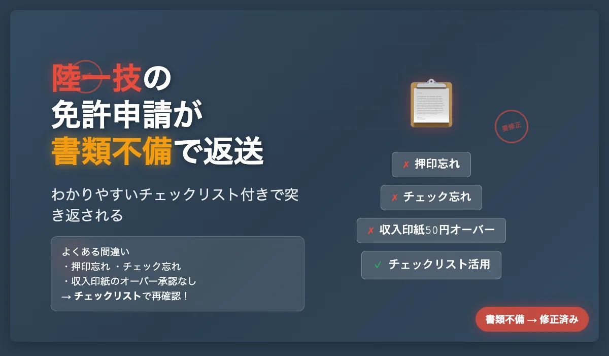 陸一技の免許申請が書類不備の為、わかりやすいチェックリスト付きで返送された