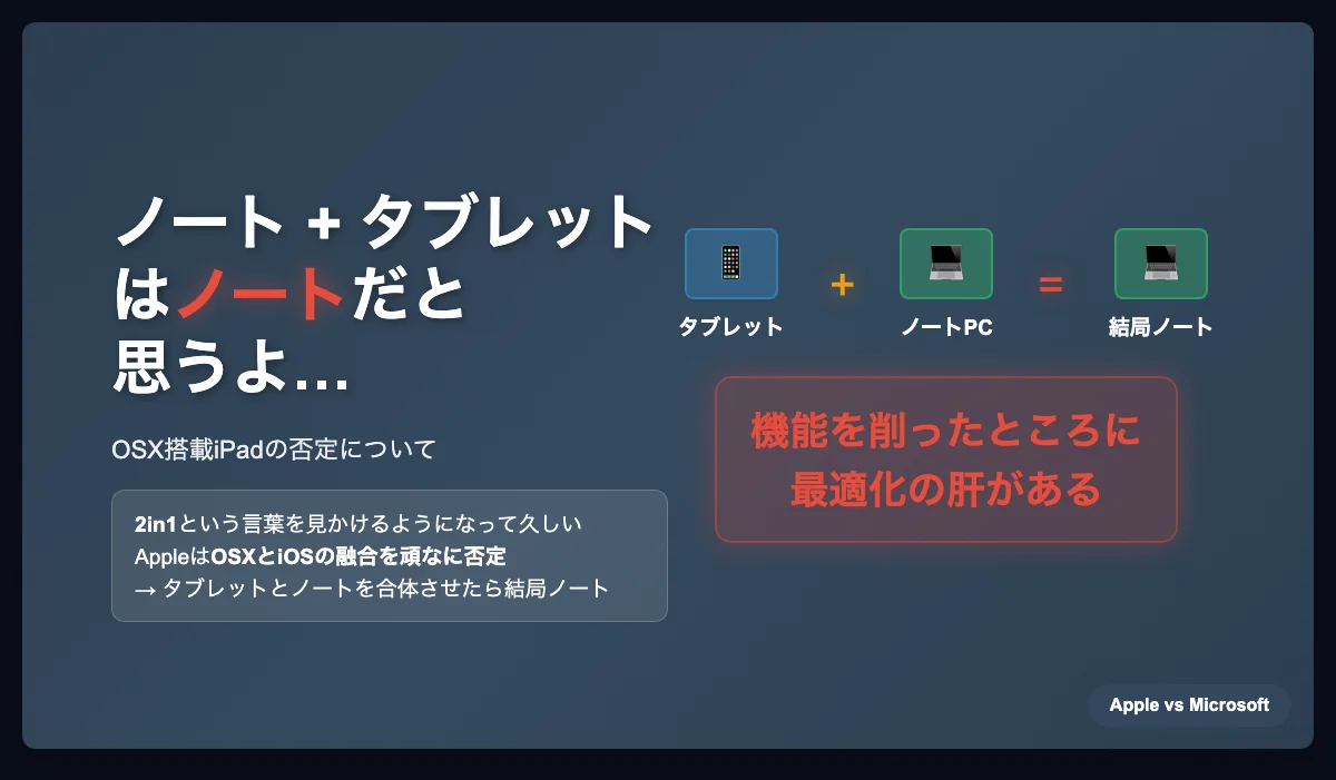 ノート + タブレット は ノート だと思うよ…OSX搭載iPadの否定について