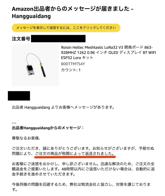 税関のワークフローはよく知らないけれど、FCCもあるこのニッチな通信デバイスが個別に問題視されたとは思えないし、なんか巻き添えくらっちゃったのかなぁ。