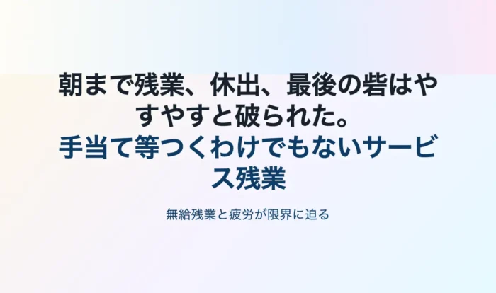朝まで残業、休出、最後の砦はやすやすと破られた。手当て等つくわけでもないサービス残業