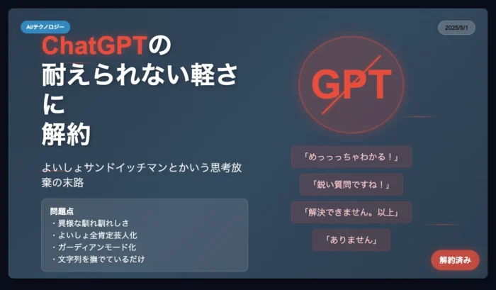 ChatGPTの耐えられない軽さに解約:よいしょサンドイッチマンとかいう思考放棄の末路