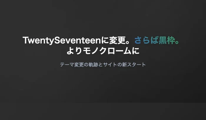 当サイトはWordPressで構築している。テーマとして標準のTwentySixteenを使っていたが、TwentySeventeenに変更した。ただでさえ白黒だったのが、さらにモノクロームな感じになってしまった。 TwentySixteen WordPressのテーマをTwentySixteenからTwentySeventeenに変更した。標準テーマを使い、これといってカスタマイズもあまりしていない以... -