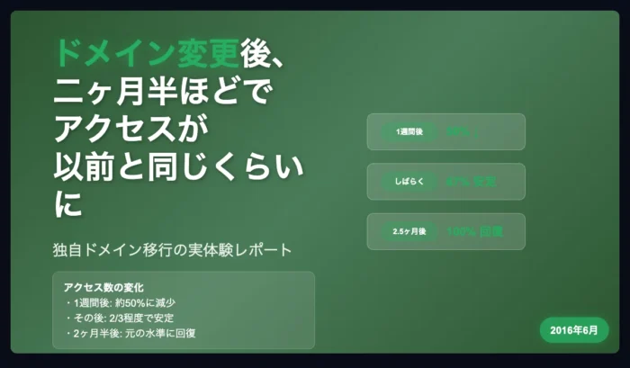 ドメイン変更後、二ヶ月半ほどでアクセスが以前と同じくらいに