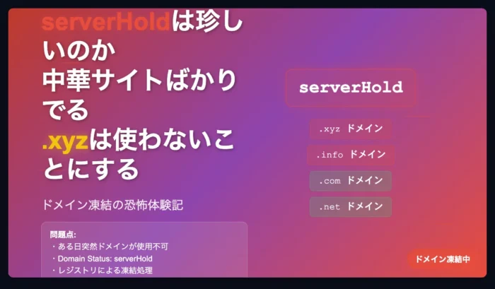 serverHoldは珍しいのか。中華サイトばかりでる。とりあえず.xyzは使わないことにする