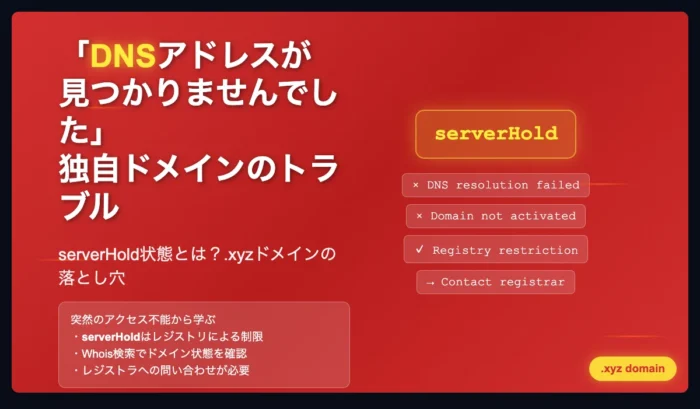 「DNSアドレスが見つかりませんでした」独自ドメインのサイトがserverHold….xyzのせいなんだろうか