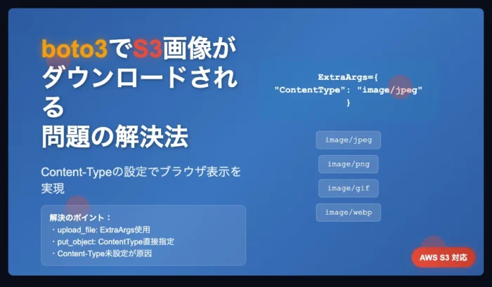 boto3でS3にアップロードした画像が、ブラウザで表示するとダウンロードされてしまう時