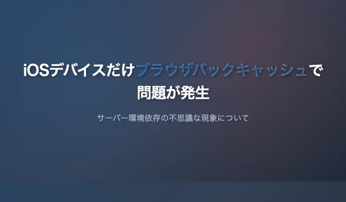 Webサービスのリリースで、最近iPhoneなどiOSデバイスだけ表示がおかしい、ということがあった。調べてみると、どうやらiOSデバイスでブラウザバックをしたときに、JavaScriptで前の値が残っていて、それに起因するエラーであった。 iOSデバイス以外では再現しなかったし、もっといえば開発環境でも生じない事象で、なかなか悩まされた。まぁ... -