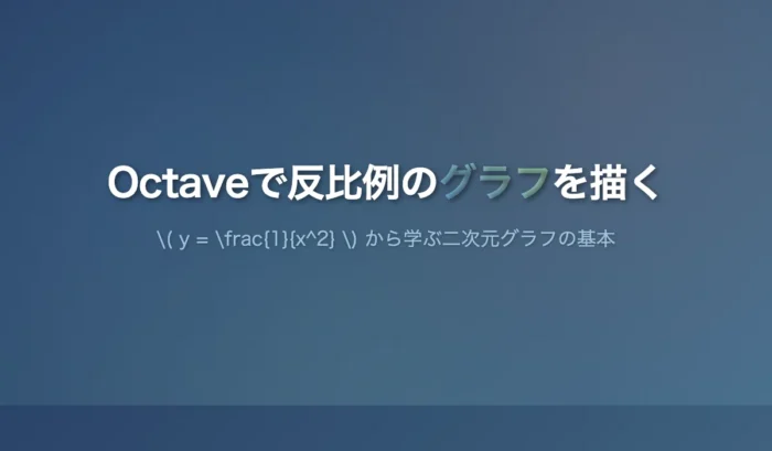 octaveで二次元グラフを描画します。反比例のグラフ(\(y = \frac{1}{x^2}\))を描きます。 \(y = \frac{1}{x^2} (-10 \leq x \leq 10) \)を描く octaveで\(y = \frac{1}{x^2} (-10 \leq x \leq 10 ) \)のグラフを描きます。これが描けたら、だいたい二次元グラフ描画のことは思い出せると思うので。 自動範囲でプロット まず普通にplotします... -