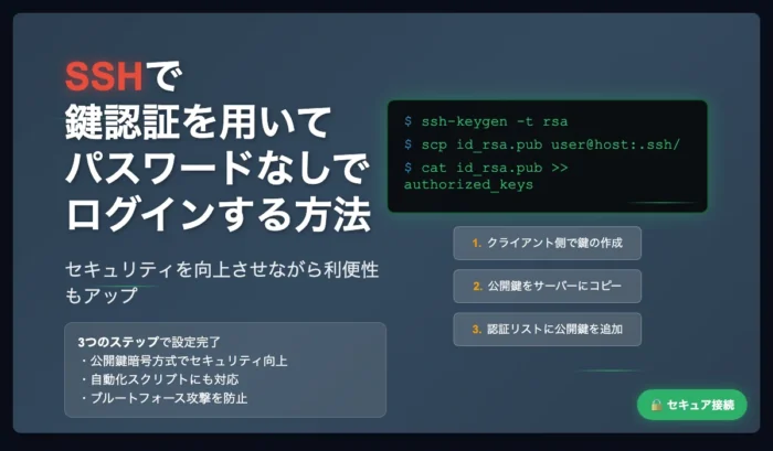 SSHで鍵認証を用いて、パスワードなしでログインする方法