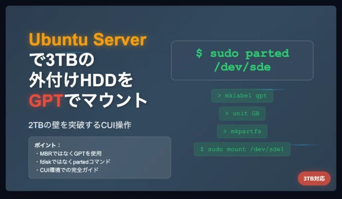Ubuntu Server 12.04のCUIで2TB超え(3TB)の外付けハードディスクを使う