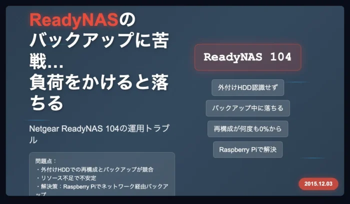 ReadyNASのバックアップに苦戦…負荷をかけると落ちる