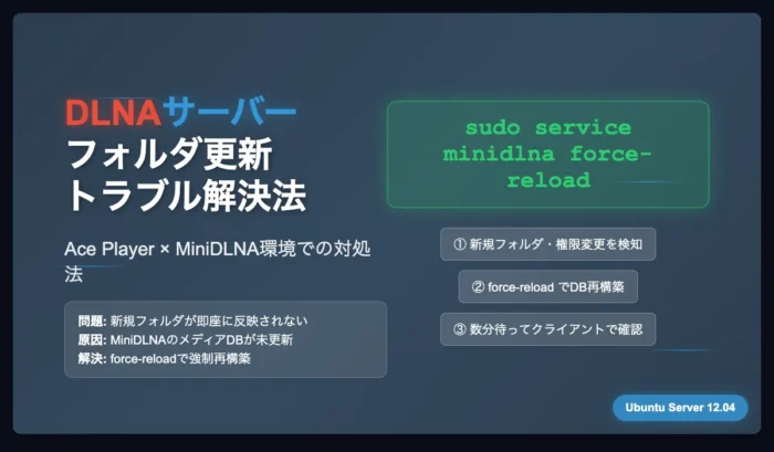 Ace PlayerでDLNAサーバー(MiniDLNA)上のフォルダが更新されないときのメモ