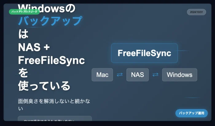 MacとWindowsのバックアップはNAS + FreeFileSyncを使っている