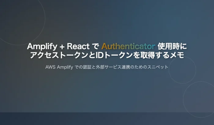Amplify で Authenticatior を使うとサクッと認証の仕組みが出来て良いのだが、外部サービスとの連携なんかでアクセストークンやIDトークンが欲しいときがあるかもしれない。そんなときのスニペットメモ。Gen2でも使えた。 コード といっても例によって「How to get user access token in AWS Amplify UI Authenticator - Stack Overflow」に... -