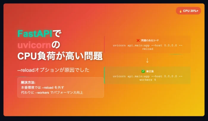 FastapiでuvicornのCPU負荷が高い……reloadオプションつけてたから