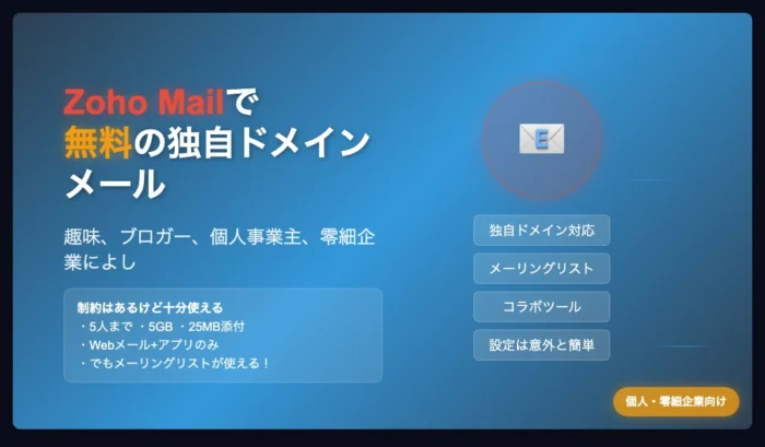 Zoho Mailで無料の独自ドメインメール 趣味、ブロガー、個人事業主、零細企業によし