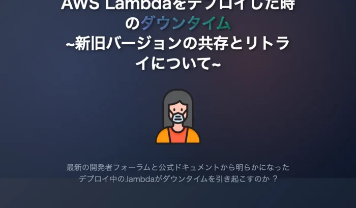 AWS Lambdaをデプロイした時、ダウンタイムは発生するのかについて。 直接答えとなる記述をドキュメントで見つけることができていないのだが、AWSフォーラムの開発者による回答を見るに、新旧両方のバージョンが動作する時間はあるものの、ダウンタイム自体は理屈のうえではなさそう。 公式フォーラムの回答 「AWS Developer Forums: What ha... -