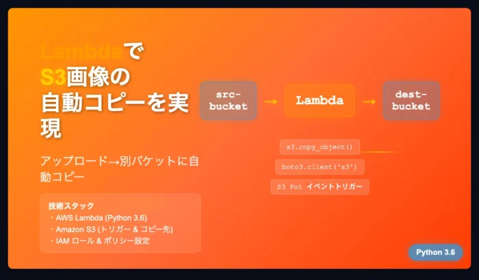 Lambdaで、S3に画像がアップロードされたら、別のバケットにコピーする(python3)