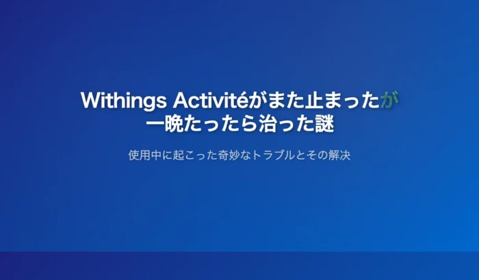 Withingsのアナログ盤スマートウォッチActivitéがまた止まりました。前に電池を替えてからまだそんなに経過していないので、電池切れとも思えません。そもそも、電池が切れる前に、時刻が遅れるなどの兆候があるはず。それが突然止まりました。まいったなぁなどと思いつつ一晩立ってみると、いつの間にか復活していました。前もこんな感じだ... -
