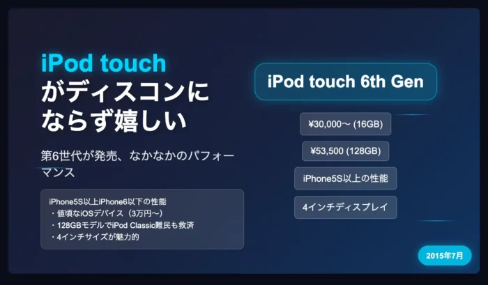 いまさらな話題ではありますが、iPod touch 第6世代が発売されました。なかなかパワーアップしており、iPhone5S以上iPhone6以下くらいのパフォーマンスであるようです。 なかなかのパフォーマンス グラフィックについては、解像度のためか一部iPhone6よりも高いベンチマークを記録しており、ゲームにうってつけだと、ある意味もっとも厳しい... -