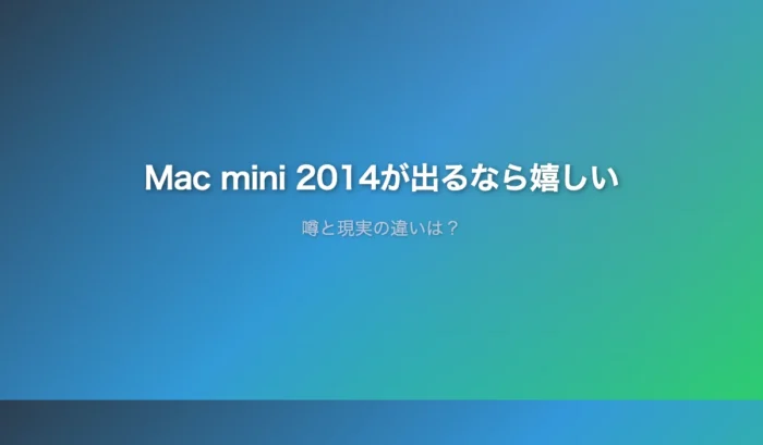 今度こそ噂は本当なのでしょうか?どこそこの国のAppleストアでMac miniが品切れだとか、一瞬だけMac mini 2014の文字が出たとか、そんな話ではなくて、信憑性の高い話なのでしょうか。元ネタは「New Mac Mini Finally Coming in October Alongside New iPads? - Mac Rumors」のようですが、どうなんでしょう。OSXの新バージョン、Yosemite公... -