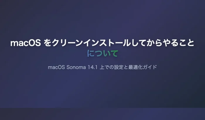 2023/10/29更新 M2 Pro Mac mini (12コア) macOS Sonoma 14.1 クリーンインストール後 クリーンインストール後は、各種アプリケーションのインストールだ。昔はこの手の作業もそれなりに楽しかったが、今となってはただひたすら面倒臭い。 環境設定 一通りの環境を設定する。 Finder設定 インターネットアカウントの設定 ネットワーク ファイ... -
