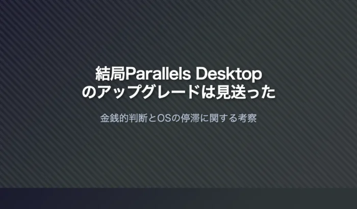 Parallels DesktopはMacユーザー御用達の仮想化ソフトである。通常版は8500円、アップグレード版は5300円だが、しょっちゅうセールしているので、その時を狙って買うのが経済的に優しい。ちょうど今も、11周年バースデーセールで25%OFF。素数の年を祝うのは珍しいが、要はセールの口実になればなんでもよいのだろう。したがって、今は年に何... -