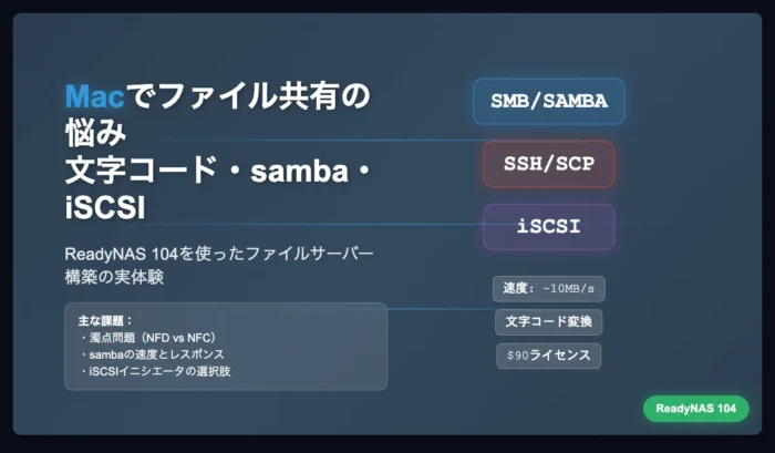 Macでファイル共有の悩み…文字コード(濁点)、sambaの遅さ、iSCSIの対応