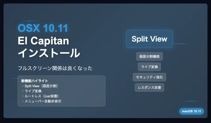 OSX 10.11 El Capitan インストール フルスクリーン関係は良くなったように思える