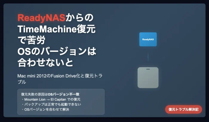ReadyNASからのTimeMachine復元で苦労 OSのバージョンは合わせないと