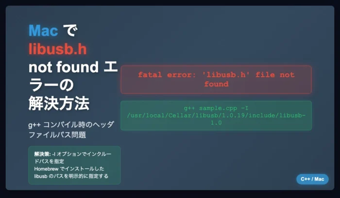 Mac で g++ コンパイル実行時に fatal error: ‘libusb.h’ file not found #include