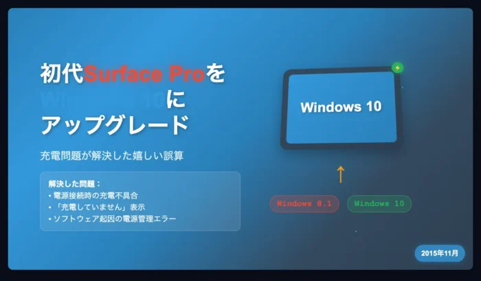 初代Surface Pro を Windows 10 にしたら、電源コネクタを繋ぐと充電するようになった