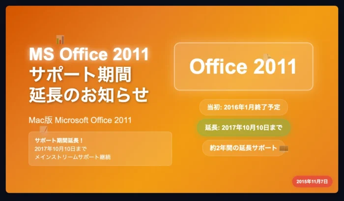 MS Office 2011 のサポート期限、2017年10月に延長してたのですね