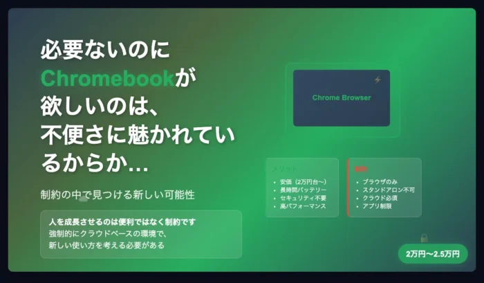 必要ないのにChromebookが欲しいのは、不便さに魅かれているからか…