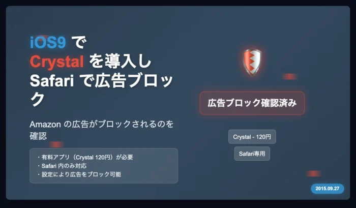 iOS9 で Crystal を導入し、SafariでAmazonの広告がブロックされるのを確認
