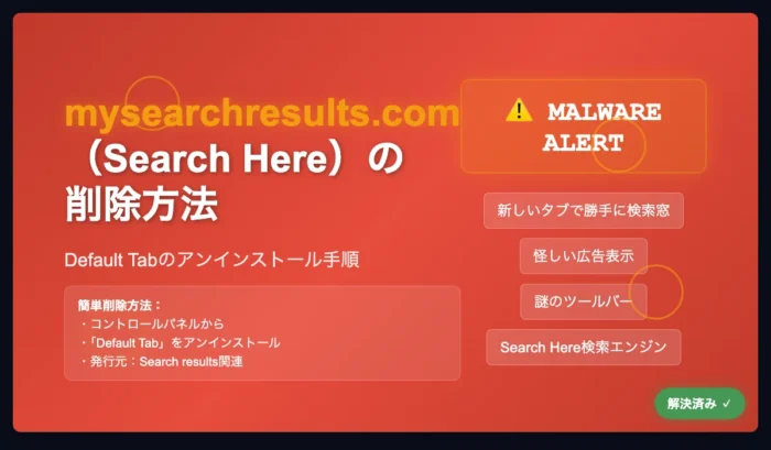 mysearchresults.com(Search Here)の削除(Default Tabのアンインストール)