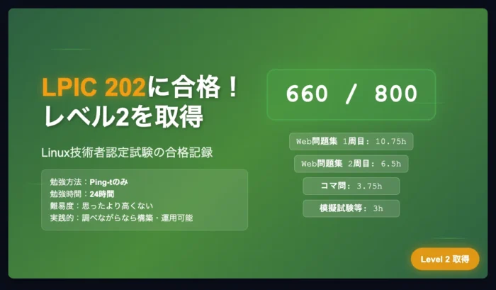 LPIC 201 合格。勉強法はPing-tのみ。勉強時間は24時間