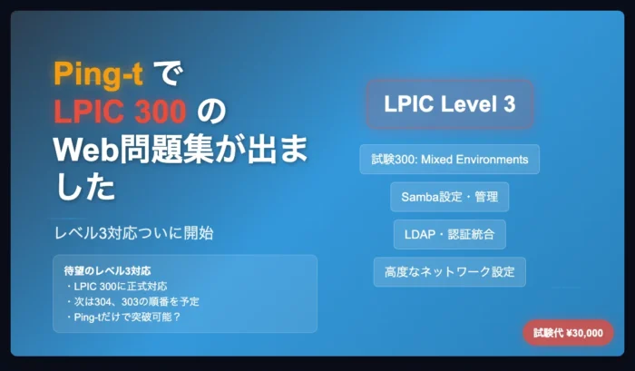 Ping-t で LPIC 300 のWeb問題集が出ました